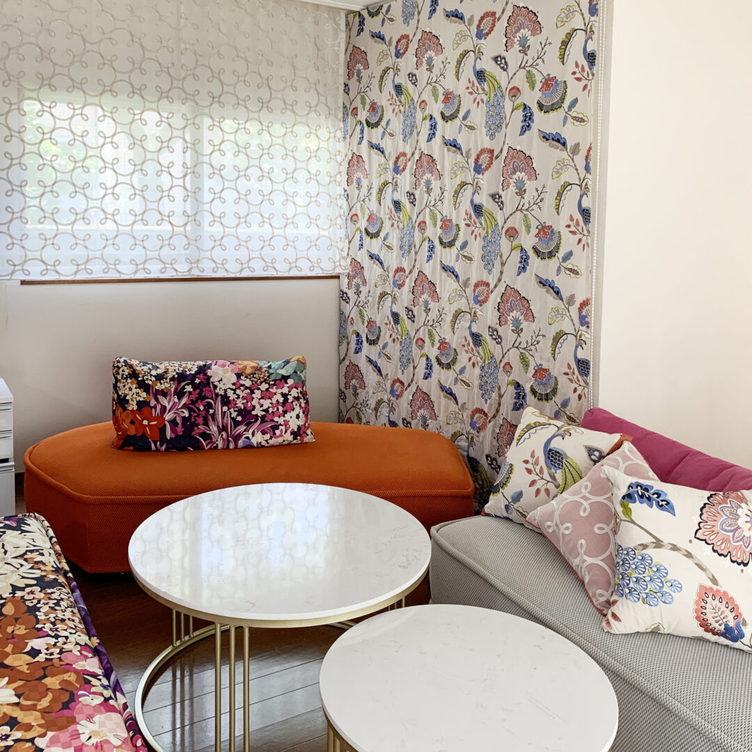 Jane Churchillの大胆な柄のファブリックで華やかな空間に