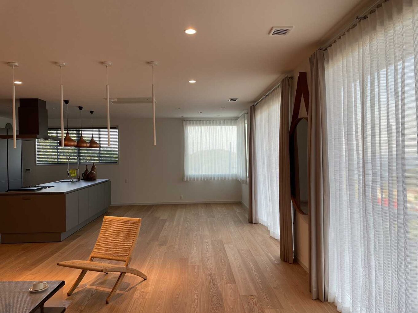 LDK全体では、カーテンとブラインドのコンビネーションにてご設置させて頂きました。